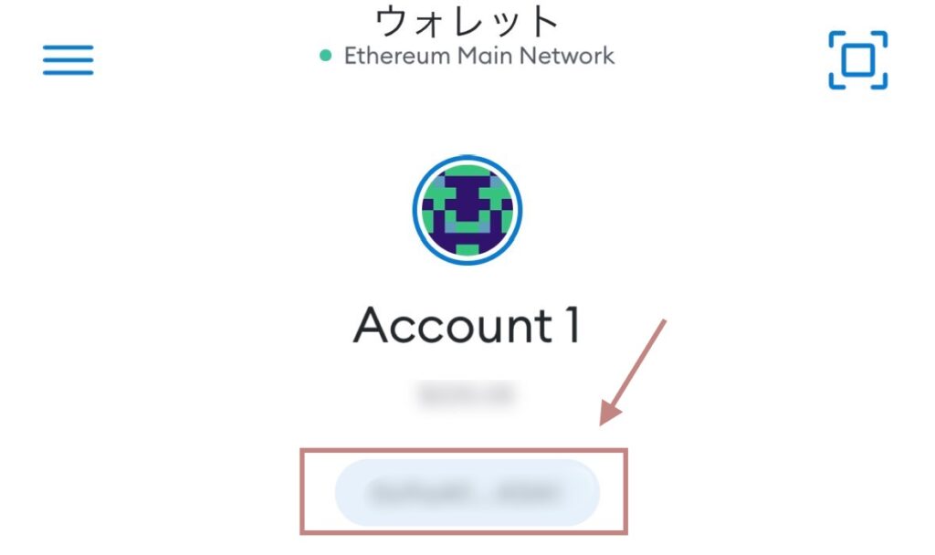 メタマスクのネットワークが「イーサリアム」になっていることを確認し、メタマスクのアドレスをコピーします。